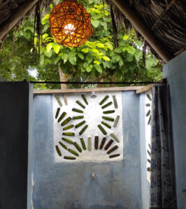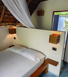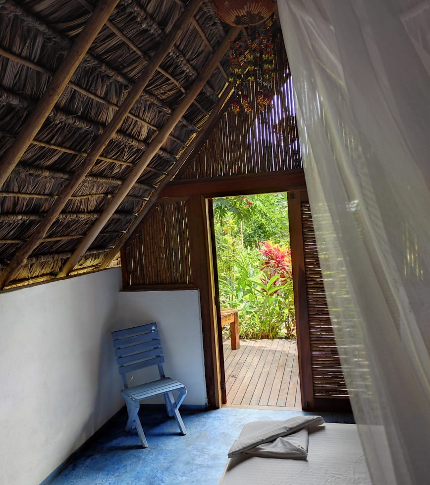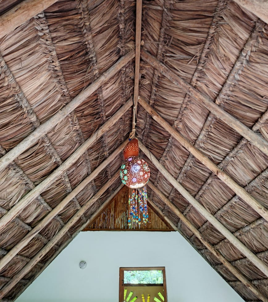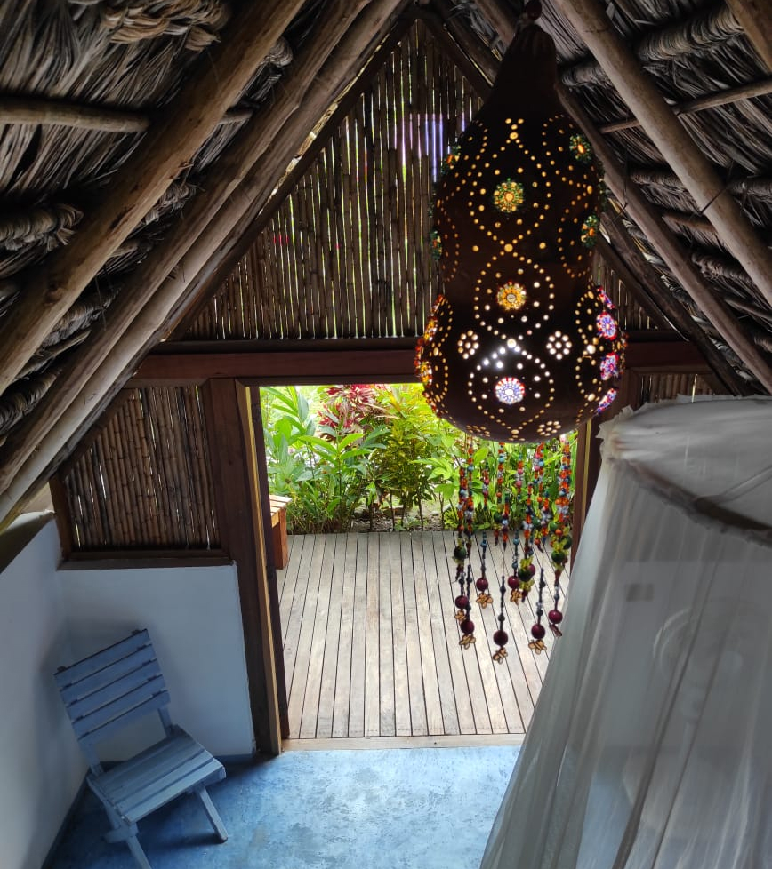 e conforma como una espacio independiente con techo en palma y en la parte frontal un deck para disfrutar del entorno natural durante los desayunos y las cenas.