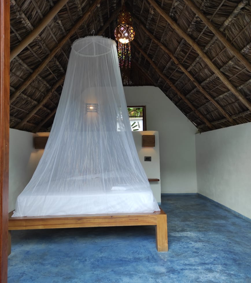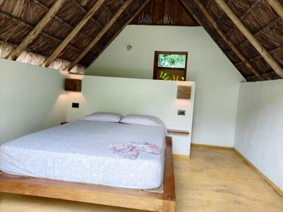 Se conforma como una espacio independiente con techo en palma y en la parte frontal un deck para disfrutar del entorno natural durante los desayunos y las cenas.
